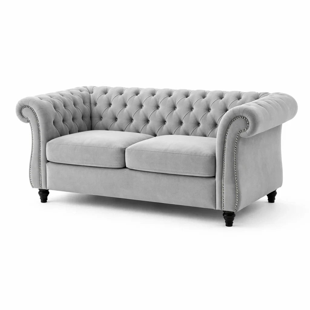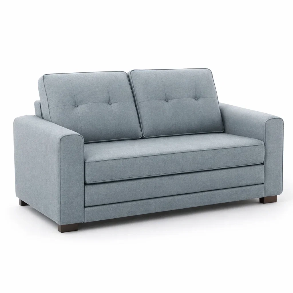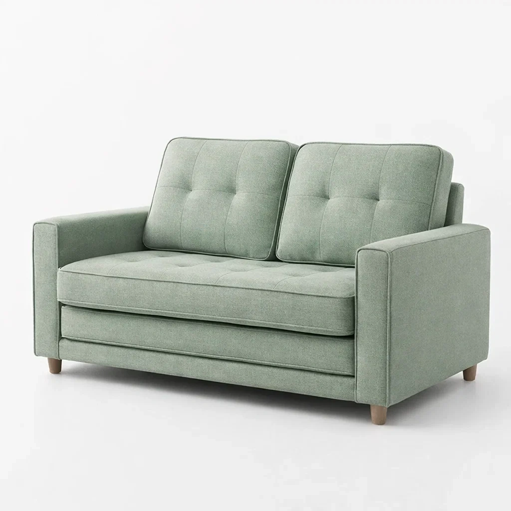 Canapé 2 places en tissu polyester vert avec pieds en bois