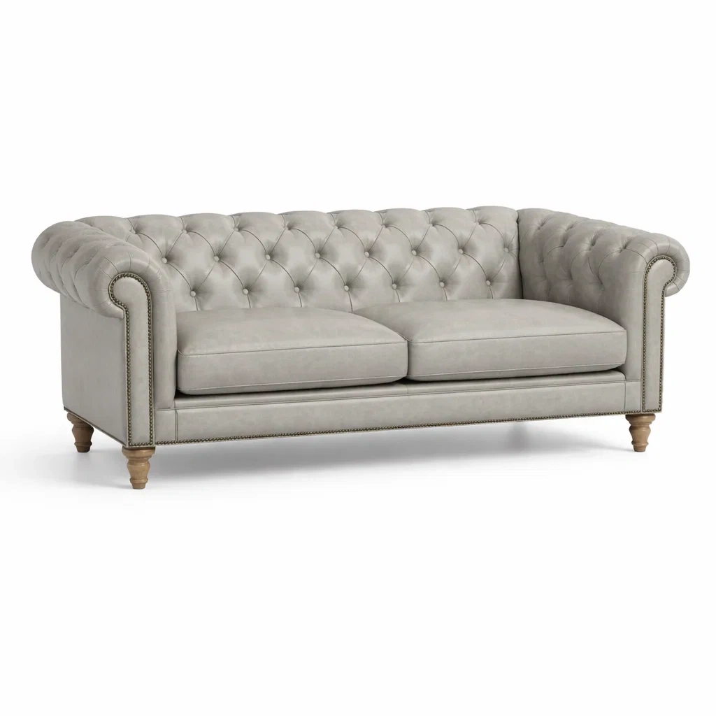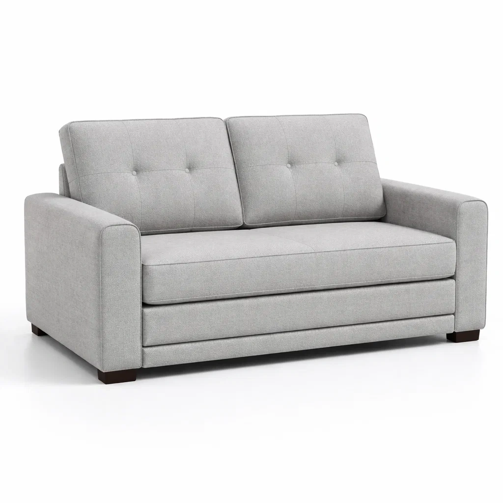 Canapé en tissu gris avec rembourrage mousse et pieds en bois