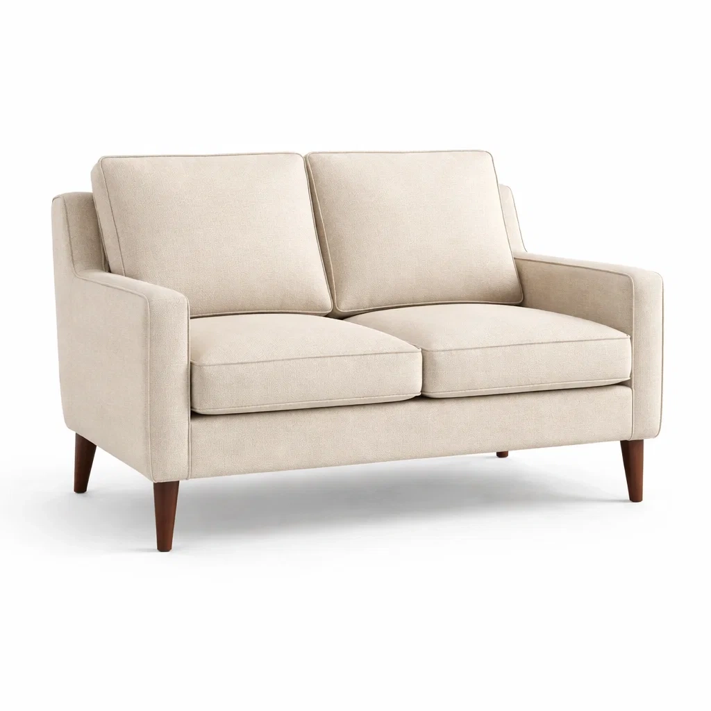 Canapé 2 places en tissu polyester beige avec pieds en bois
