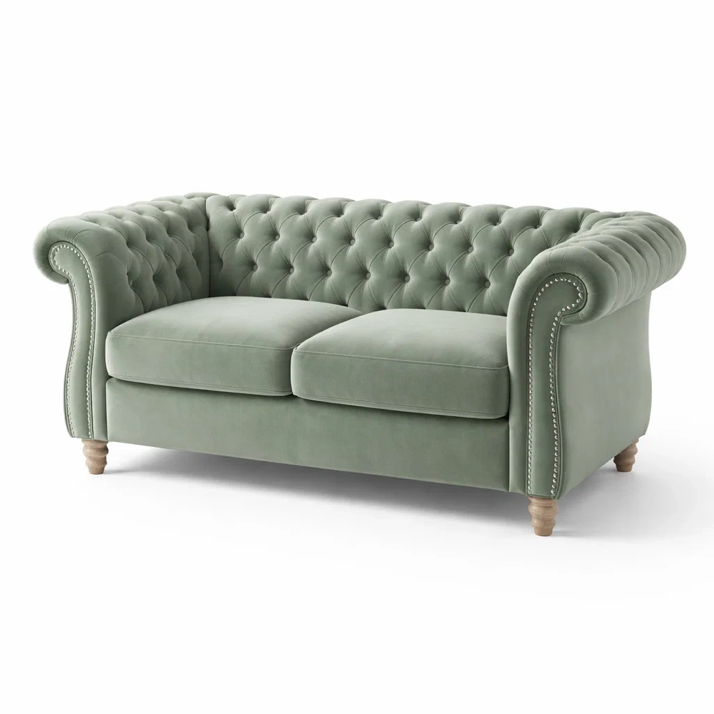 Canapé 3 places en tissu polyester avec cadre en bois vert menthe