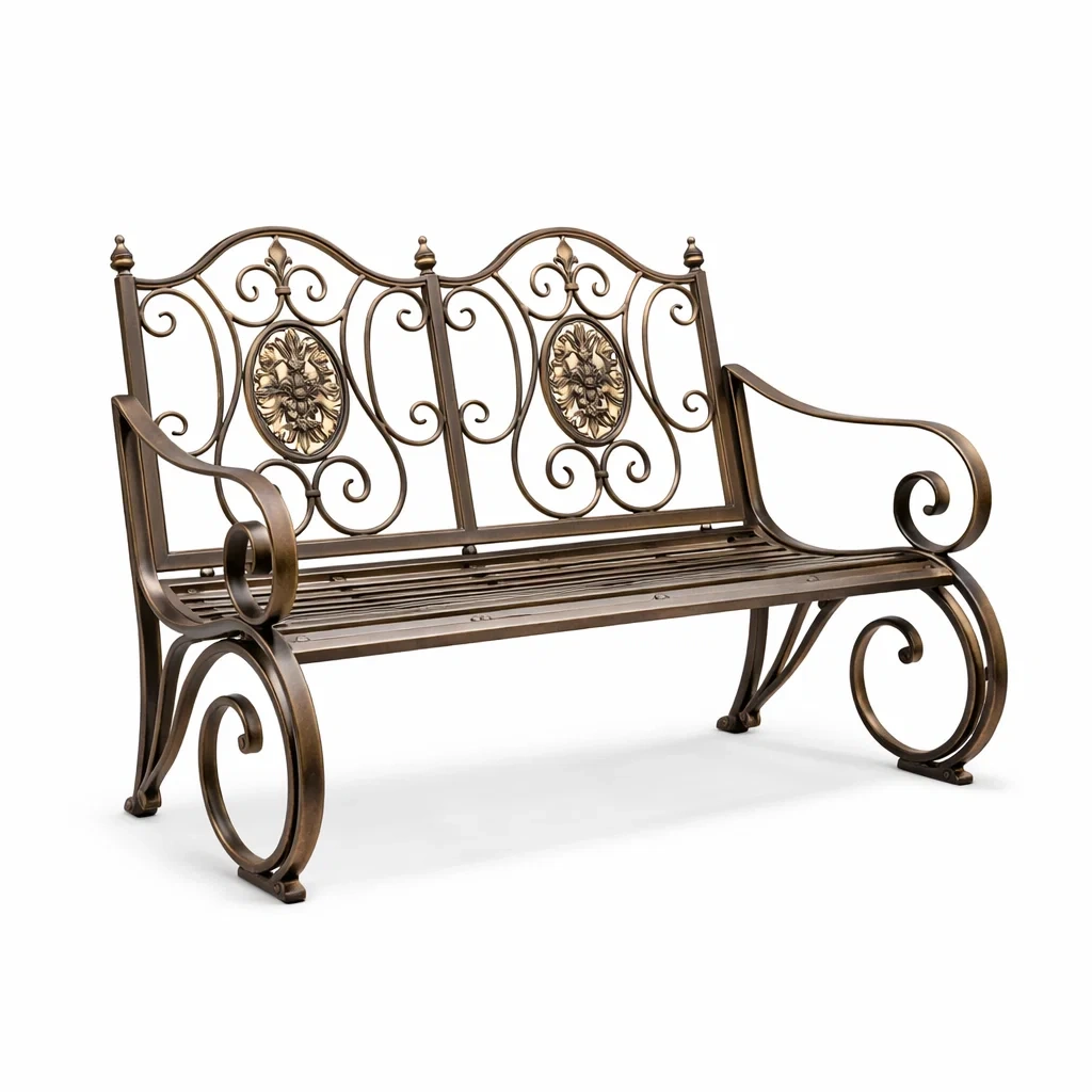 Banc de jardin en fer forgé bronze