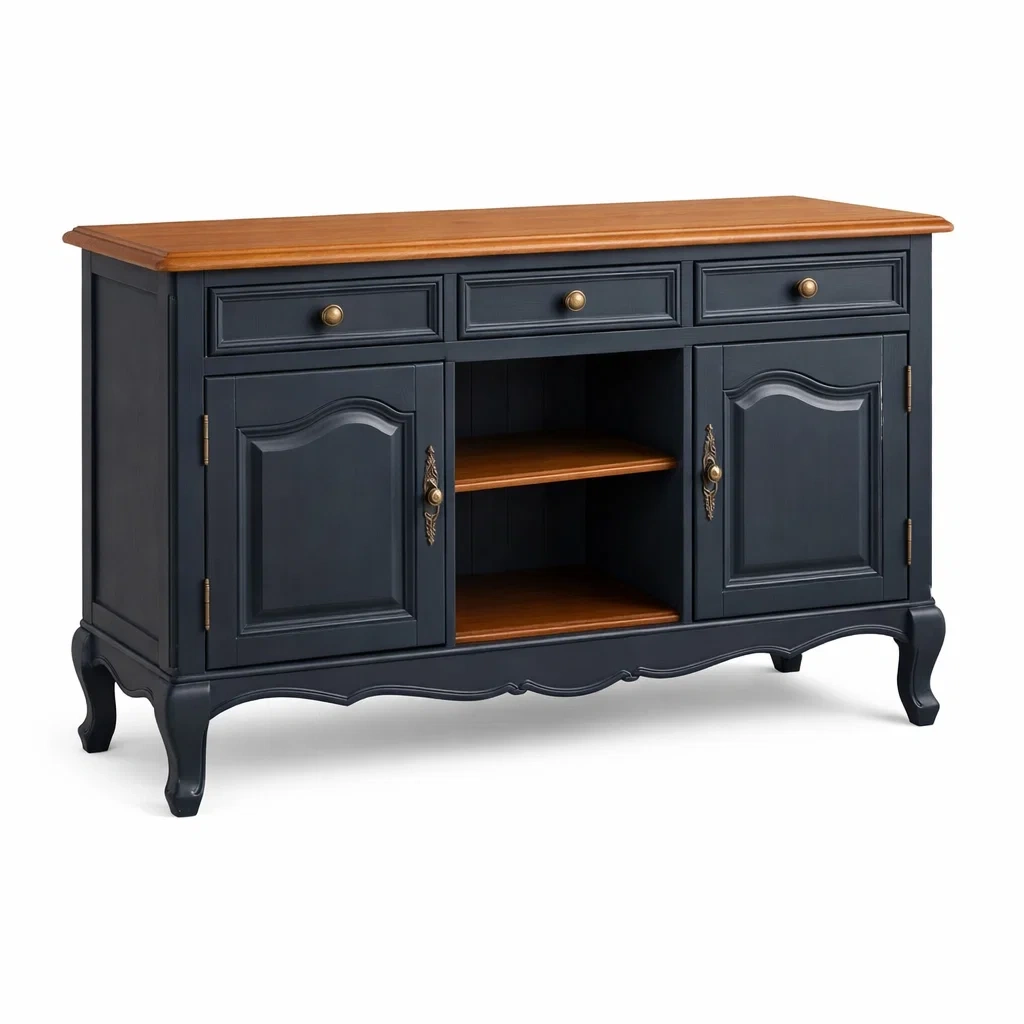 Rangement: Comprend 3 tiroirs, 2 portes et 2 étagères ouvertes