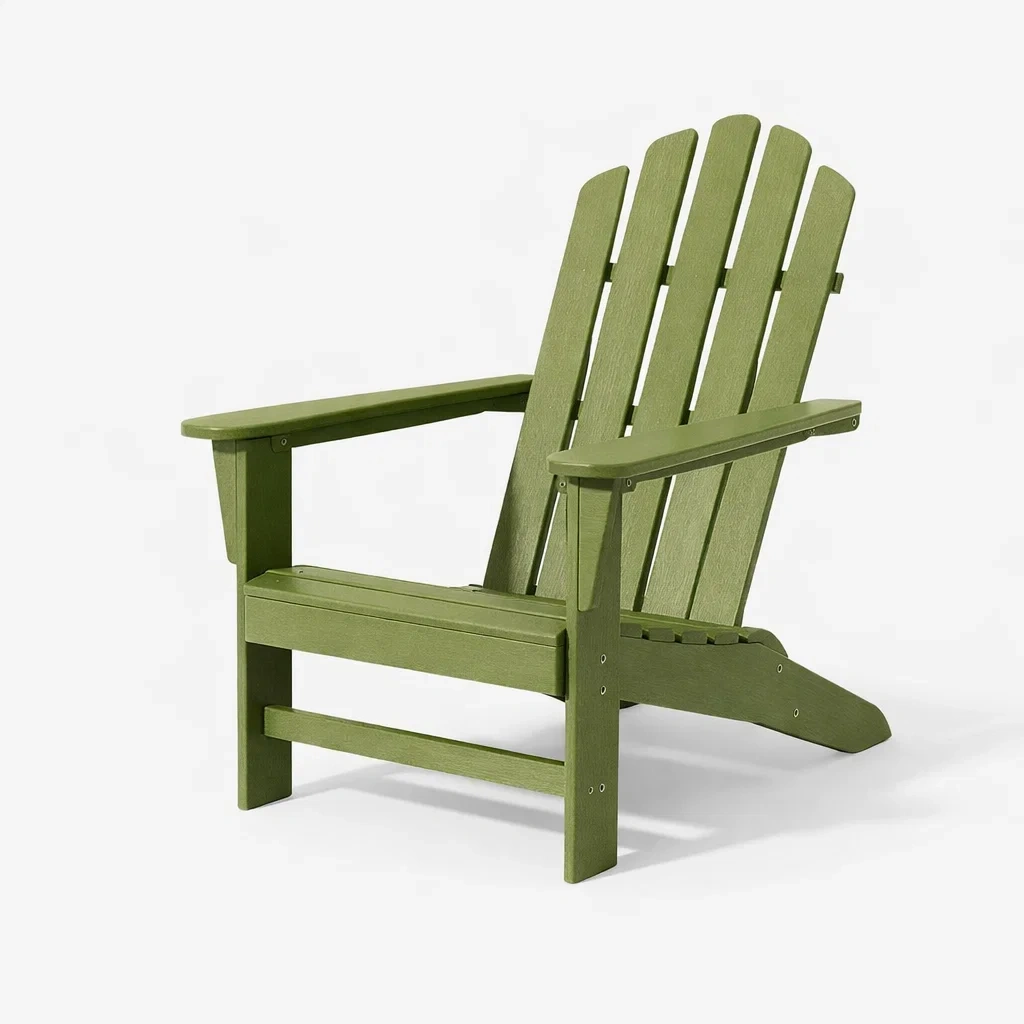 Cette chaise Adirondack est fabriquée en polyéthylène haute densité, assurant une durabilité extérieure.