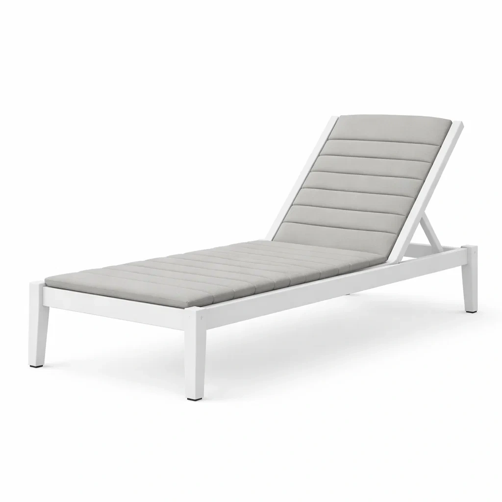 Chaise longue réglable avec structure en aluminium recouverte de poudre. Le coussin est en polyester. Dimensions : 200 cm de longueur, 65 cm de largeur, et 90 cm de hauteur. Poids total de 12.5 kg. Conçue pour un usage extérieur, elle offre des positions multiples de dossier ajustable manuellement. Capacité de charge maximale : 100 kg. Inclut un coussin amovible.