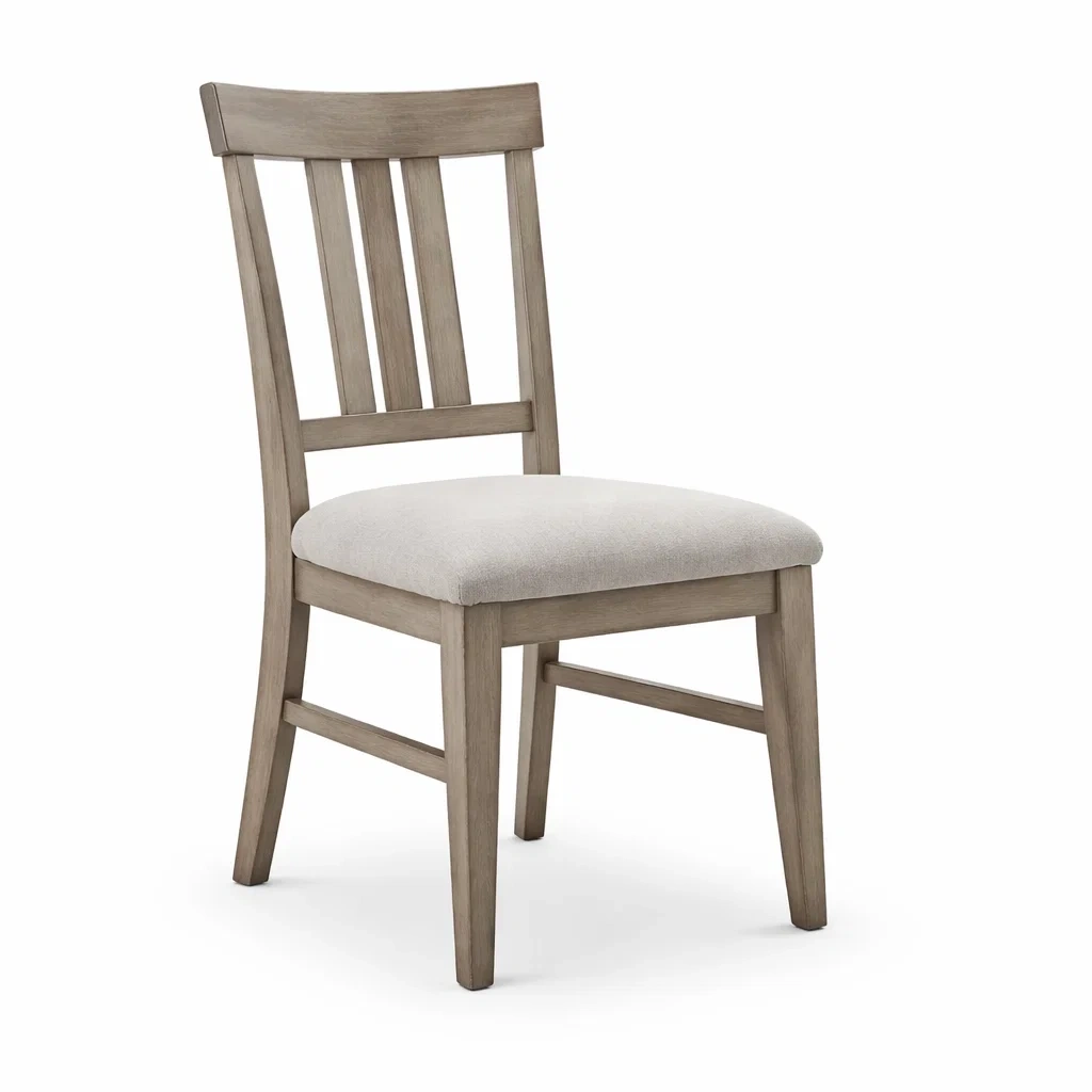 Chaises de salle à manger en bois d’hévéa avec assise en tissu gris clair