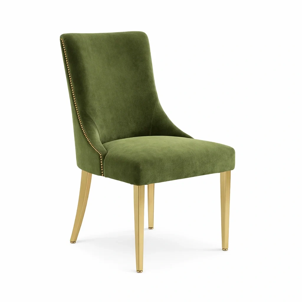 Matériau : Revêtement en velours polyester. Pieds en acier plaqué or.