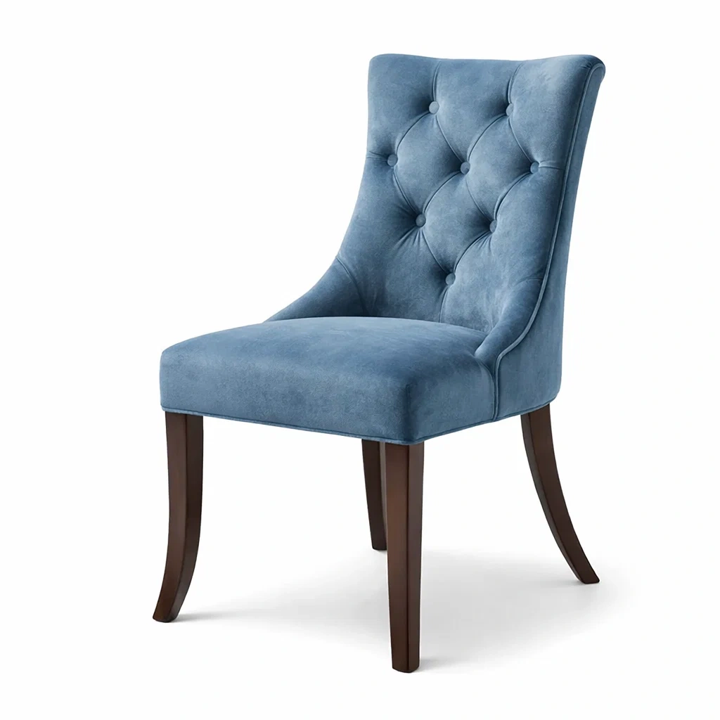 Chaises de salle à manger en velours bleu avec cadre en bois de hêtre