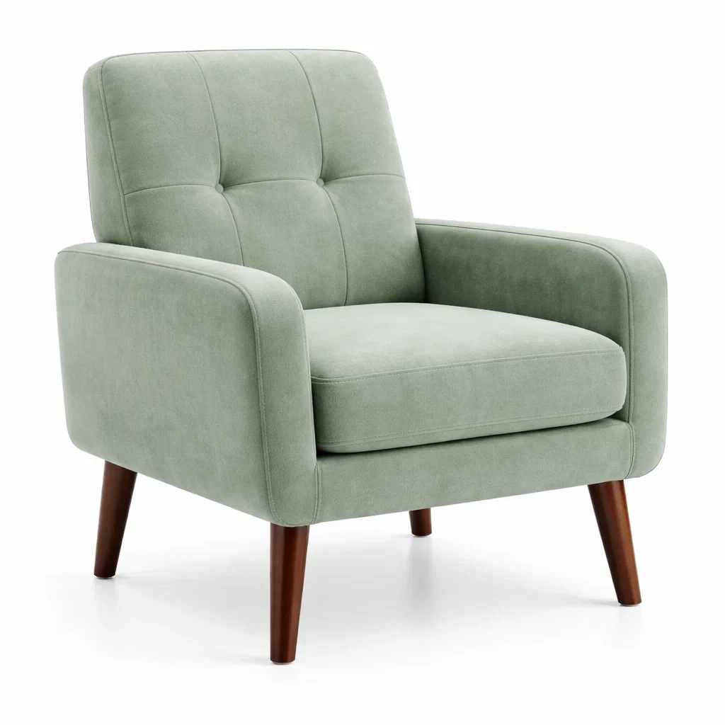 Fauteuil avec revêtement en tissu polyester pour l'assise et le dossier. Pieds en bois massif.