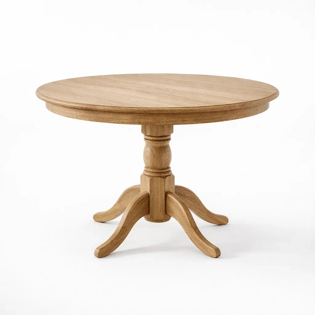 La table est fabriquée en bois de chêne massif.